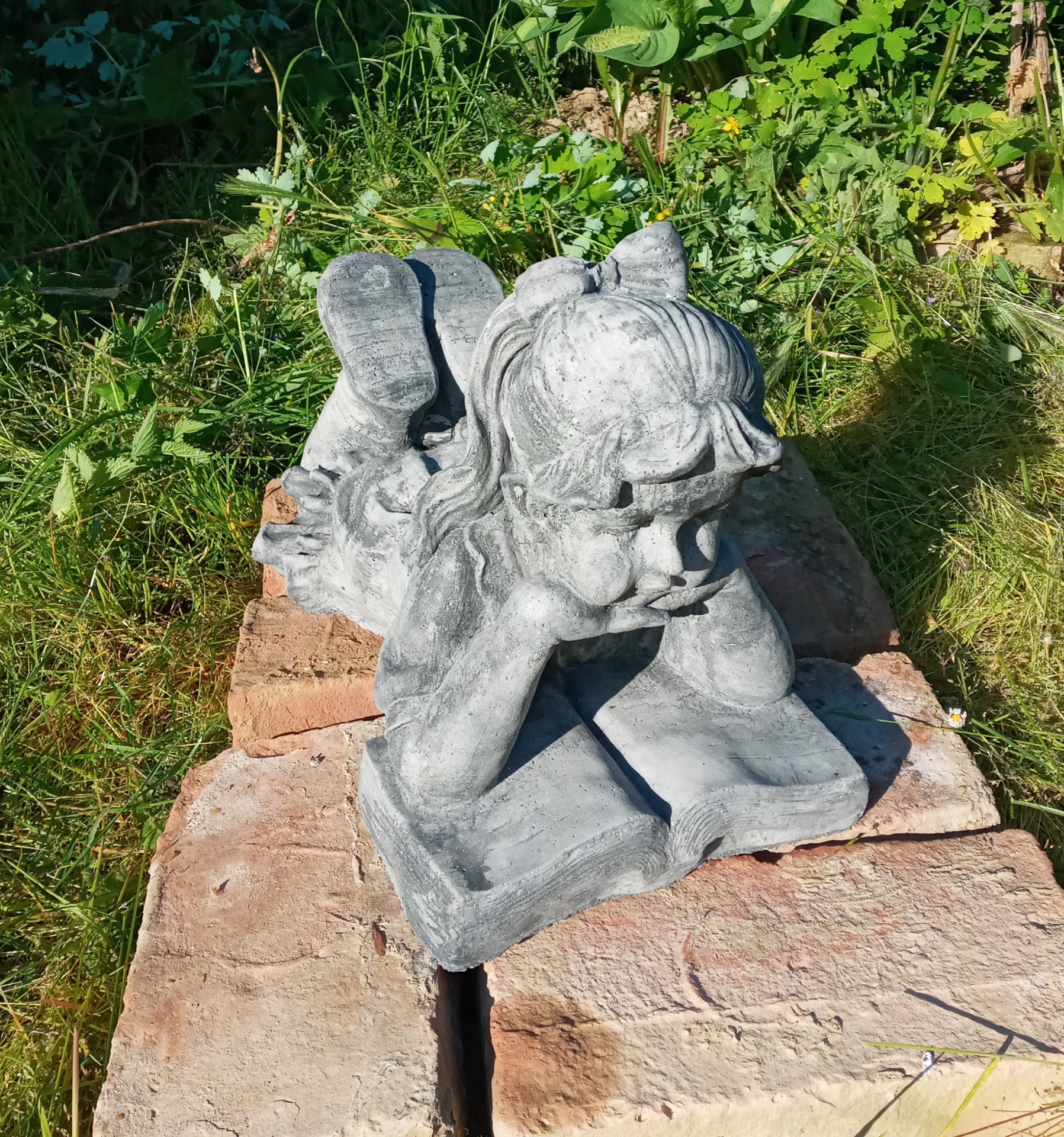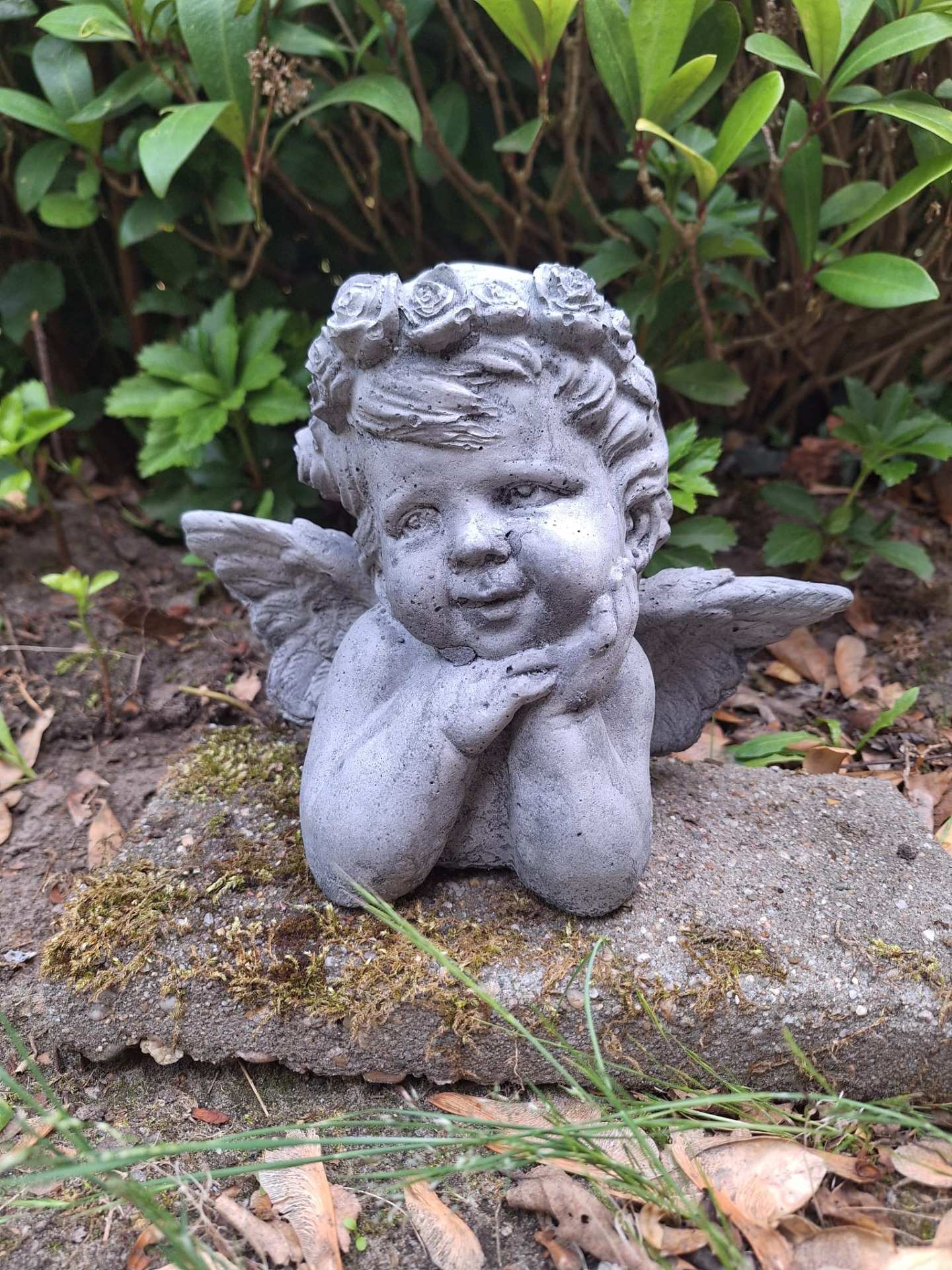 engel van 55cm hoog. De engel weegt ongeveer 28 KG en de voet heeft een afmeting van 19x19cm.
