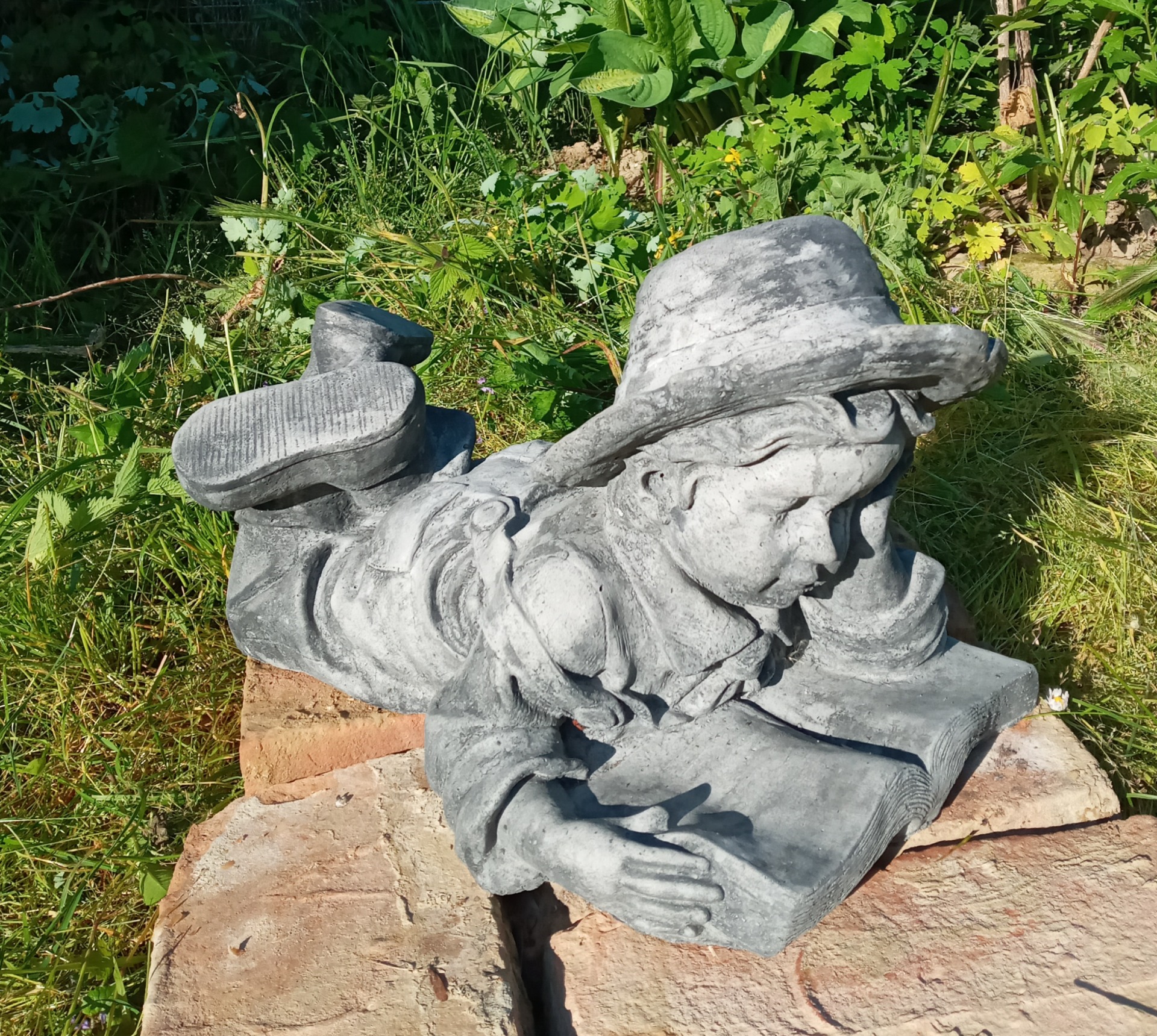 Een jongen met fluit van 94cm hoog. De jongen weegt ongeveer 71 KG en de voet heeft een omtrek van 30x30cm.