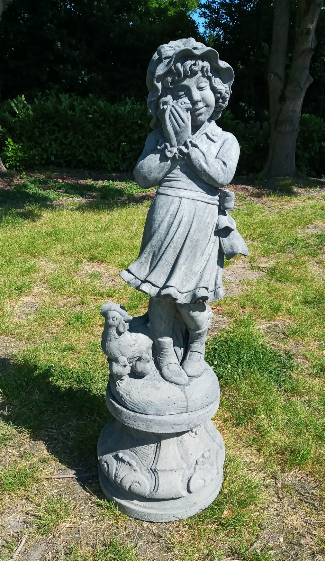 beeld van 71 cm hoog. Het beeld weegt ongeveer 19 KG en de voet heeft een afmeting van 17x17cm.
