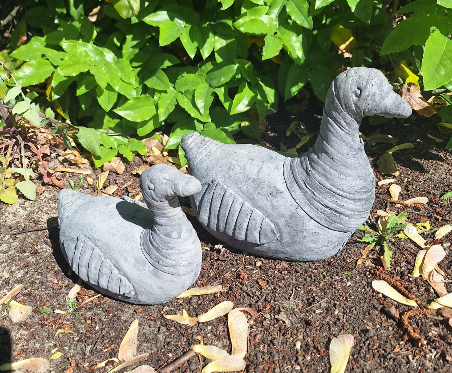 2delige set eenden van 18 en 23cm hoog, deze set weegt ongeveer 11 KG samen.