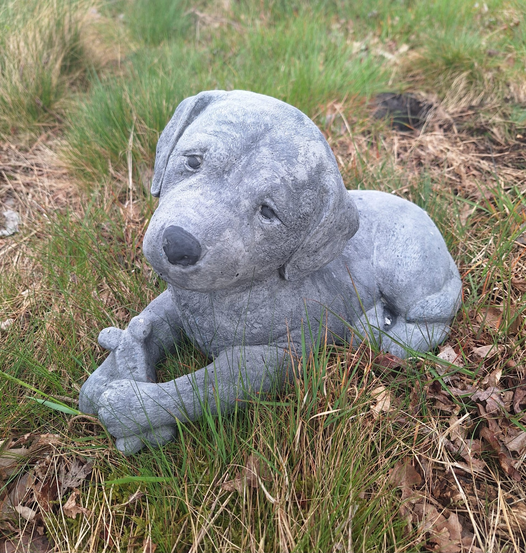 Hond met kluif van 24cm hoog en 29 cm lang, weegt ongeveer 12 KG.