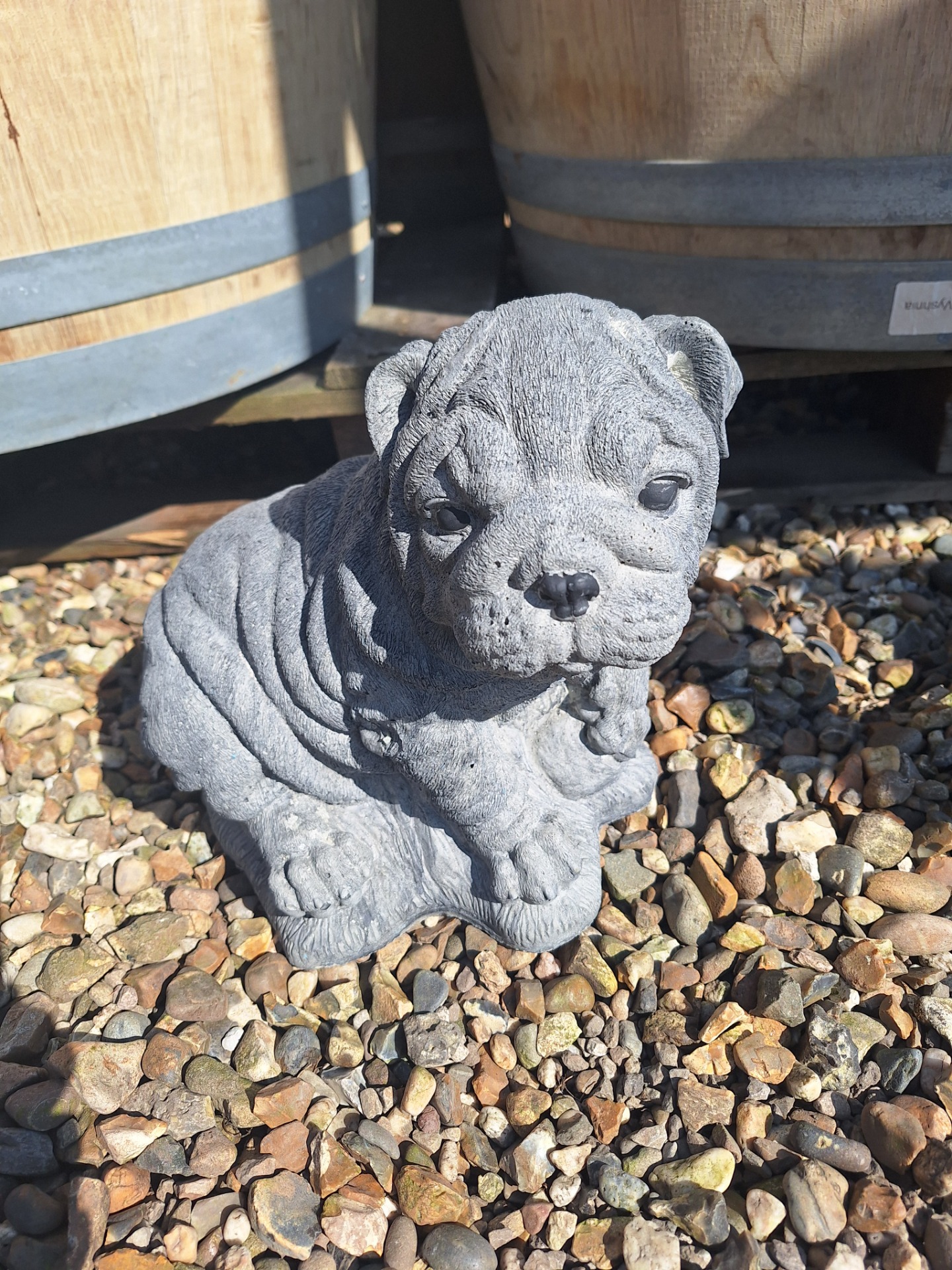 Bulldog van 27cm hoog, weegt ongeveer 13 KG.