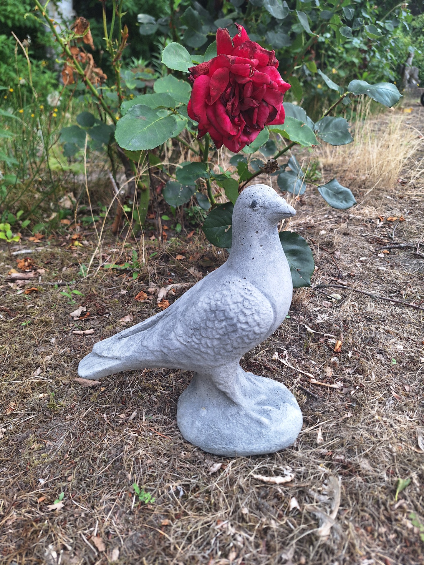 Duif van 24cm hoog en gewicht van ongeveer 3 KG.