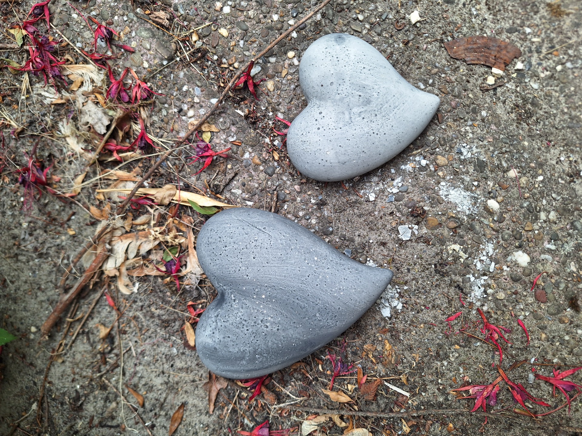 Een set van 2 harten van 8cm en 10cm breed. De set van compleet weegt ongeveer 3 KG.